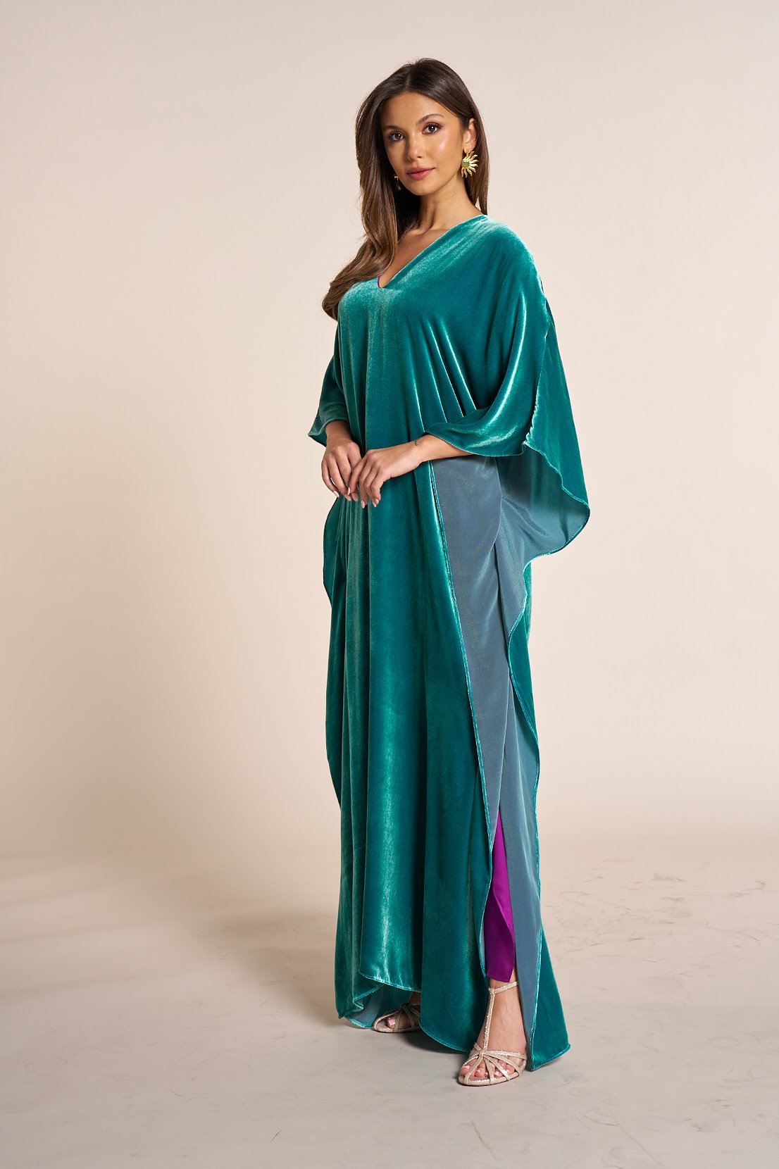 Velvet kaftan v neck with multiple cut details
