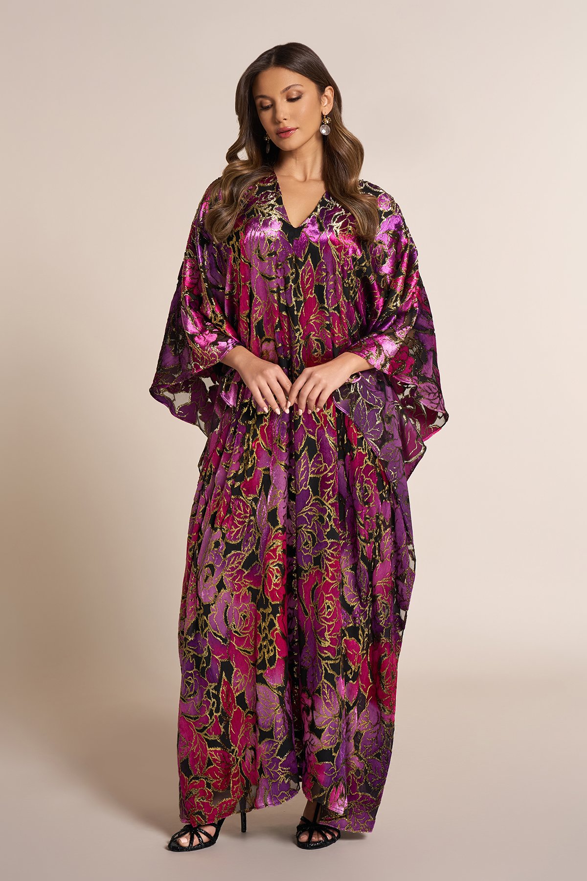 Velvet kaftan with multiple cut details