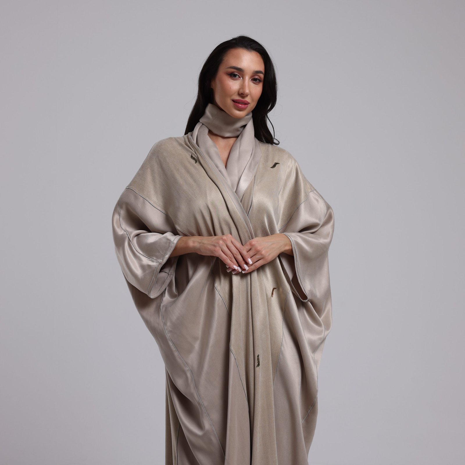 Bisht style abaya with hand embroidery