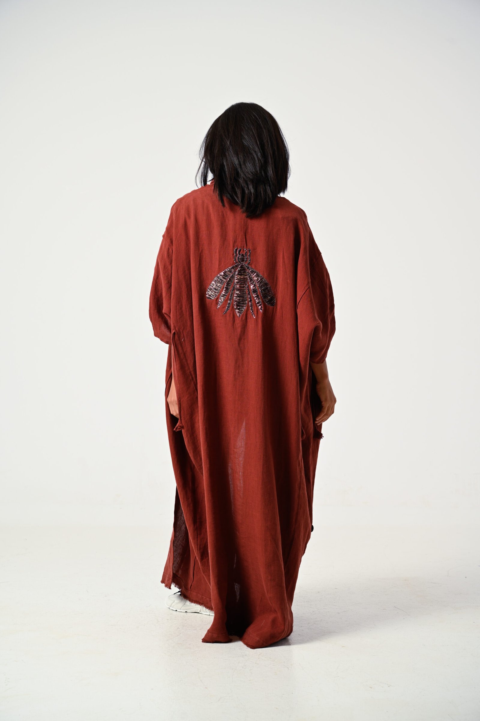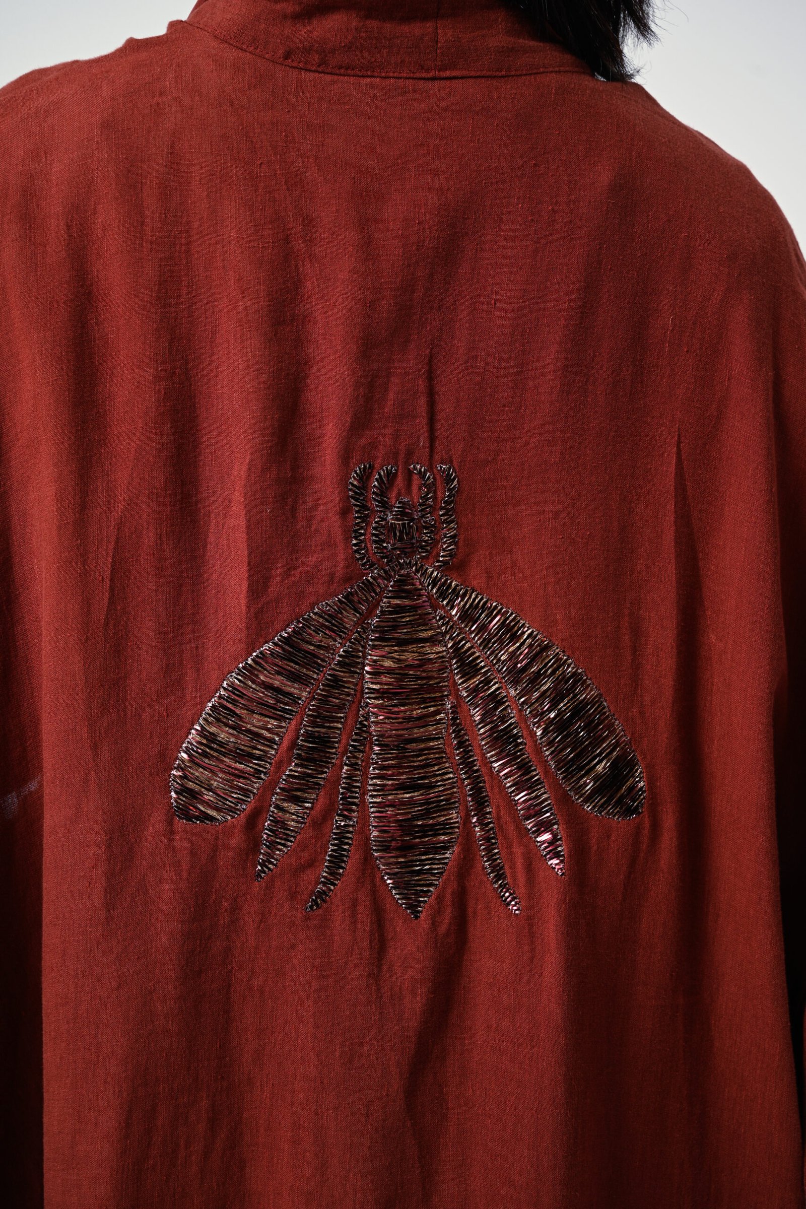 Brick linen Bee embroidery