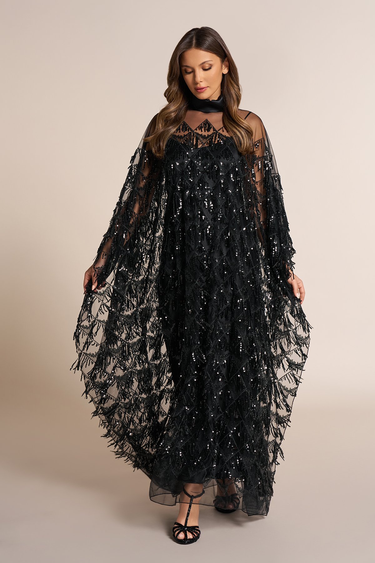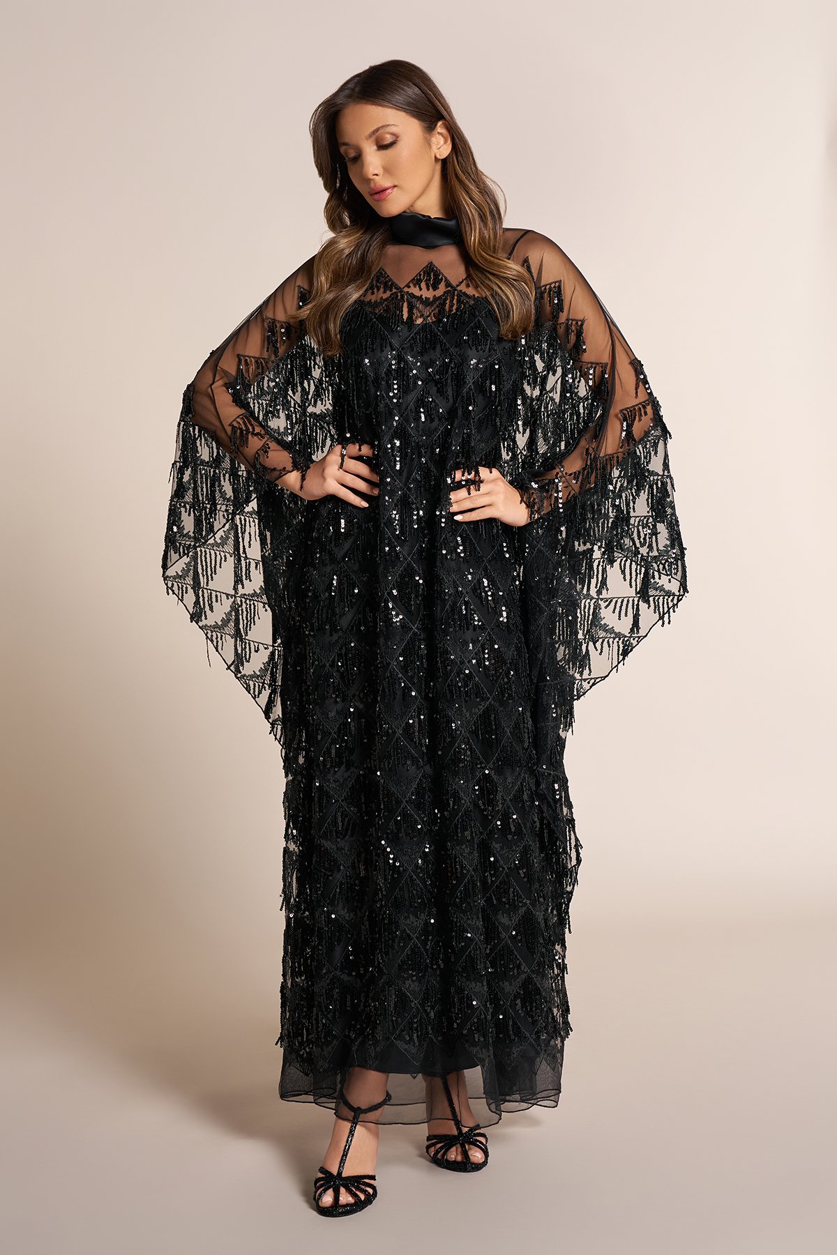Chiffon qaftan with sequins