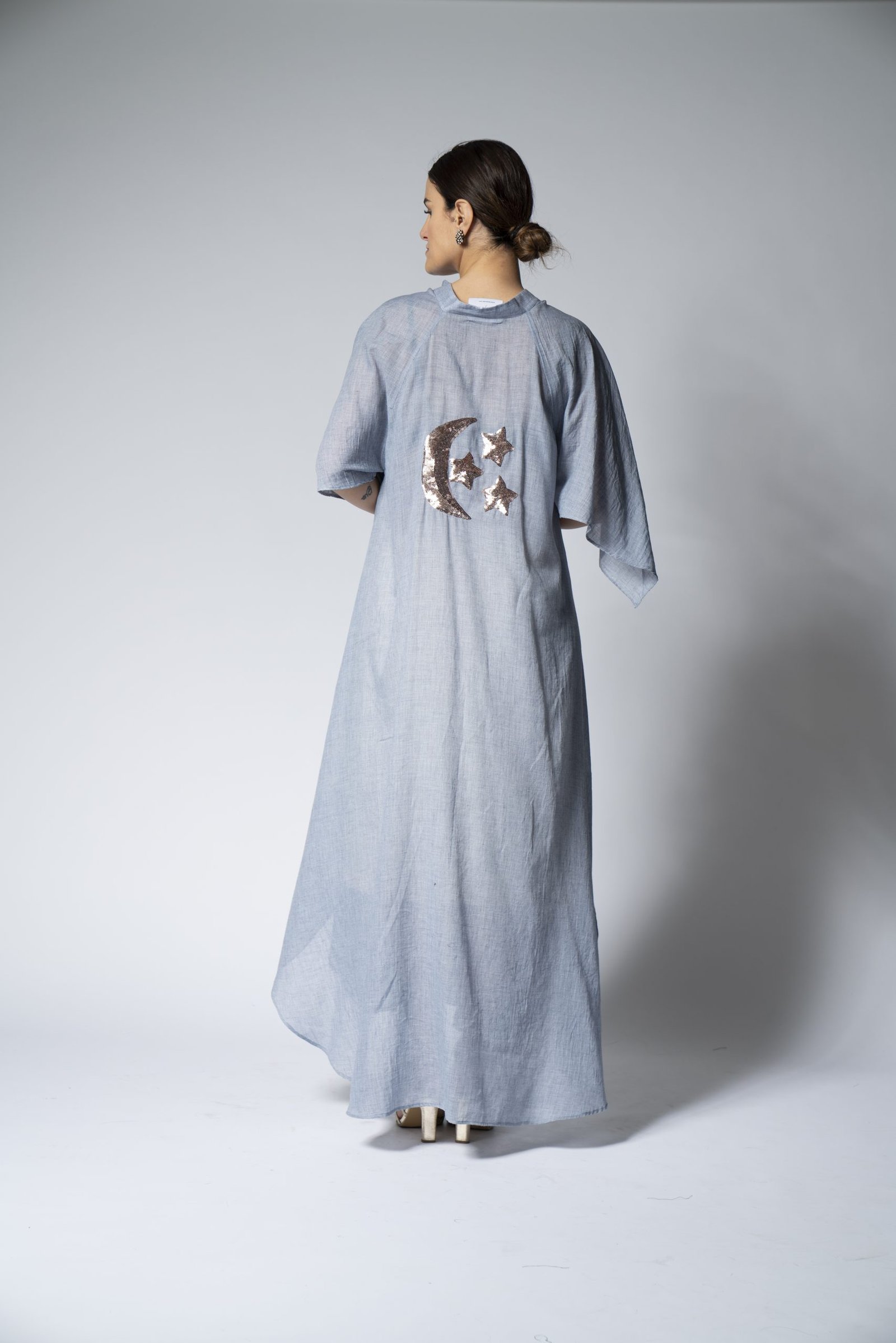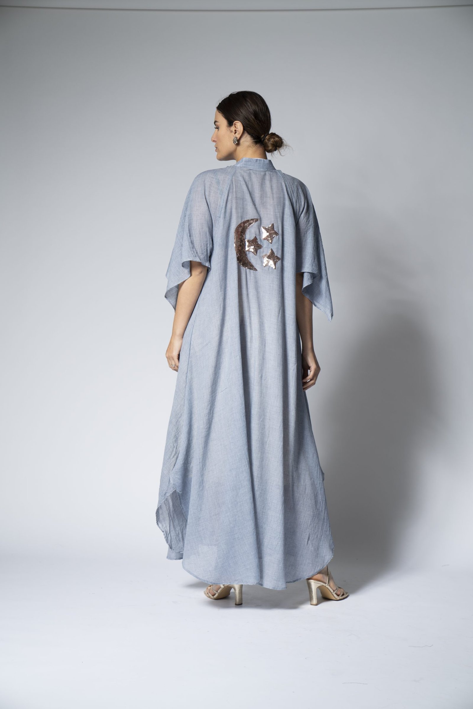 This blue cotton dress is not just comfortable; it’s a canvas for self-expression, highlighted by the intricate embroidery on the back. The soft cotton material ensures all-day comfort, while the detailed stitch work adds an artistic flair. Ideal for those who appreciate craftsmanship, this dress pairs well with sandals for a daytime look or can be dressed up with heels for an evening event. Make a statement with this beautifully embroidered piece that speaks to both style and comfort.