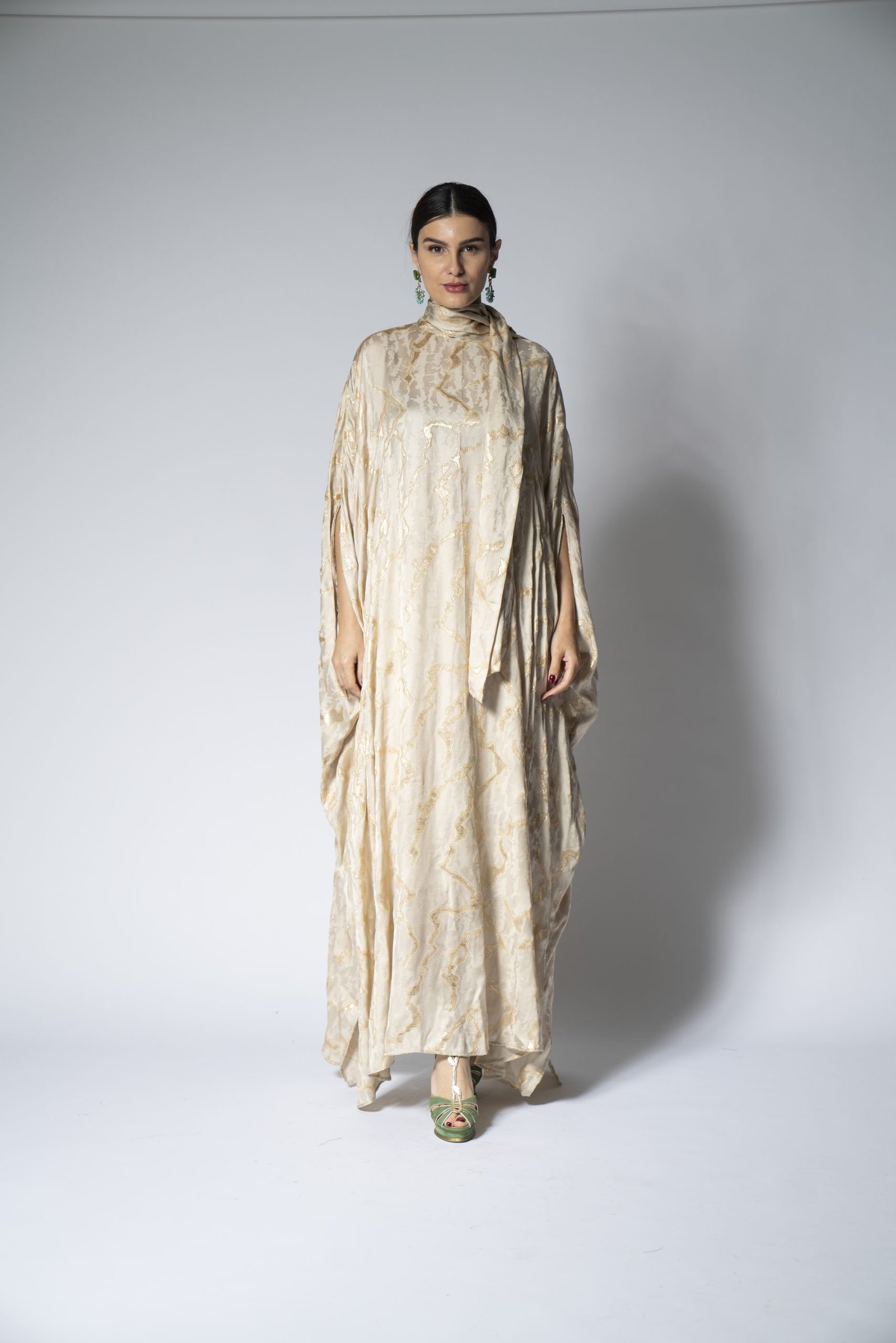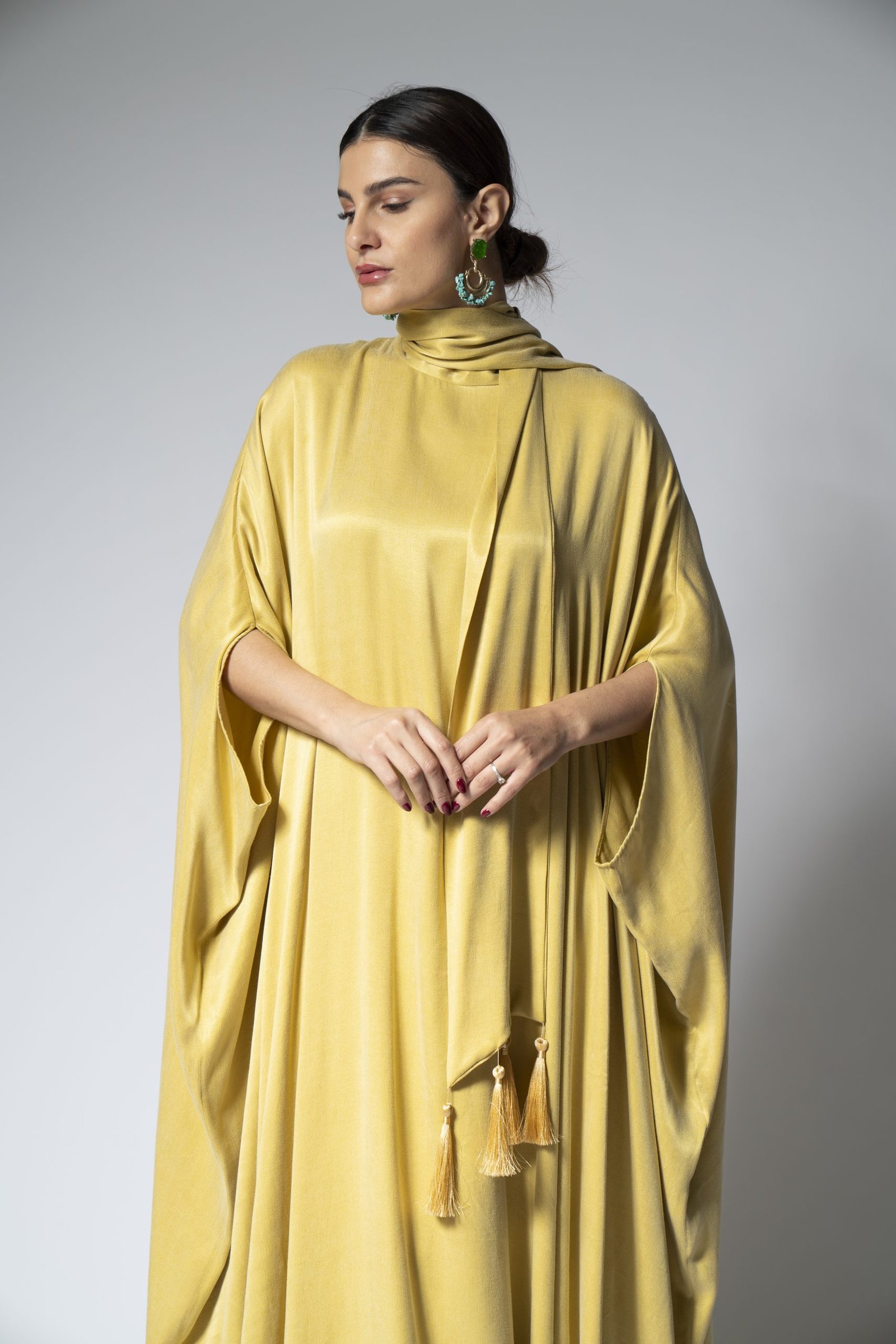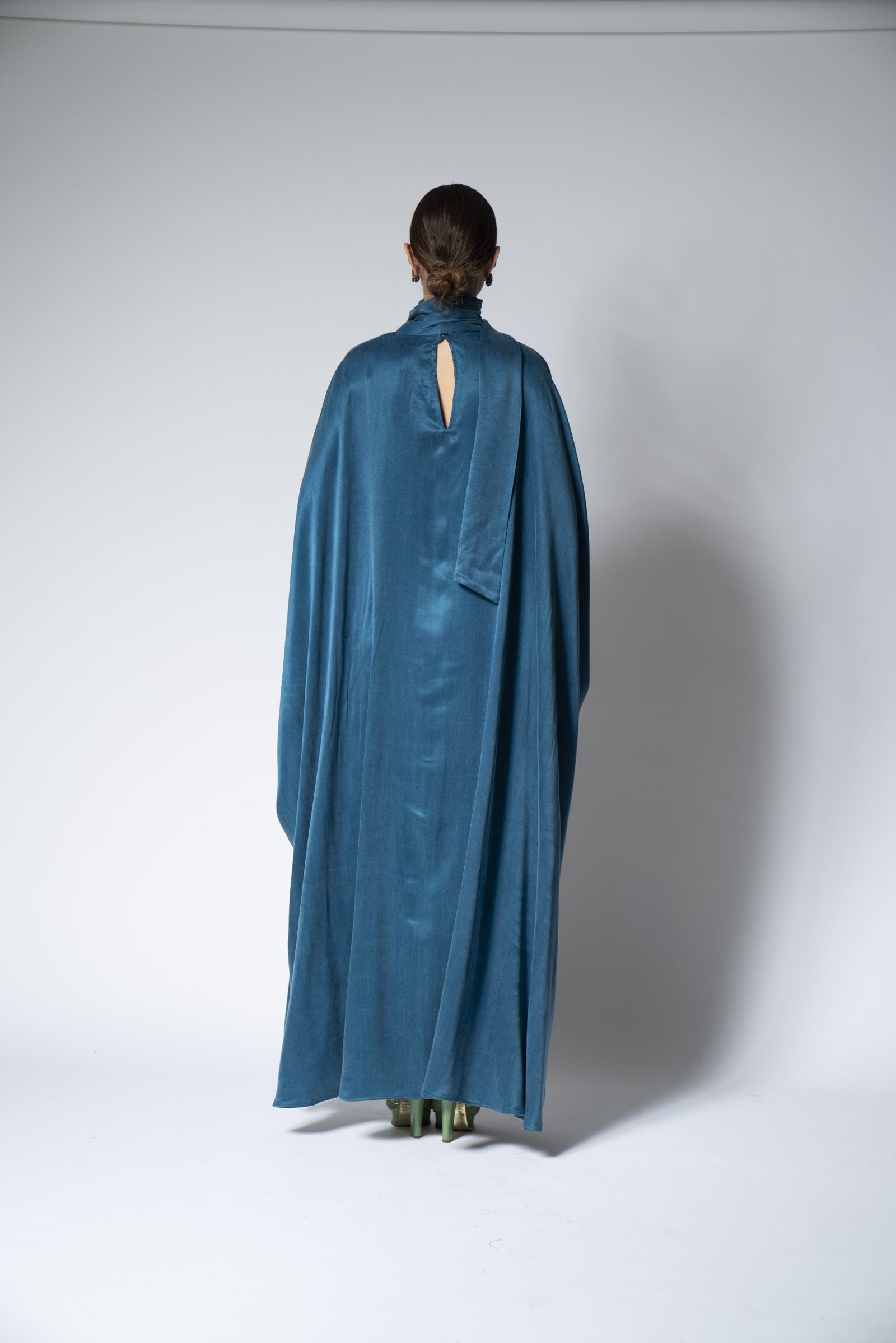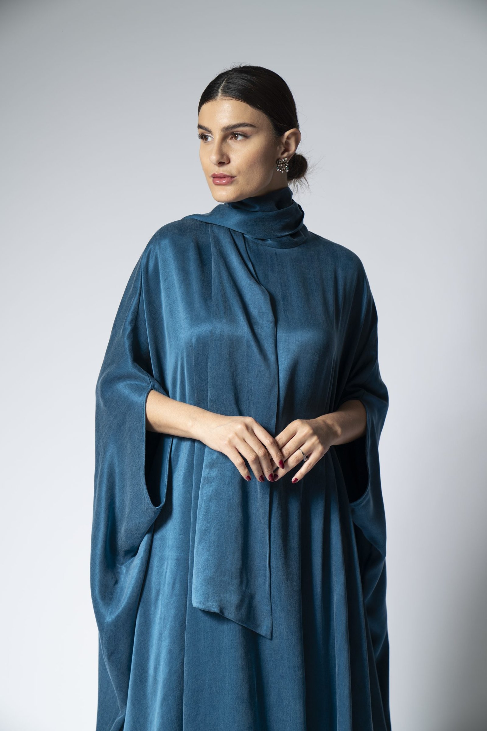Embrace the purity and comfort of our organic teal Foolar jalabiya. This beautifully designed garment is made from environmentally friendly materials, ensuring that fashion and sustainability go hand in hand. Its rich teal hue is both soothing and striking, offering a versatile look that can transition from a casual daytime to an upscale evening affair. The relaxed fit and soft fabric drape elegantly, providing a flattering silhouette for all body types.