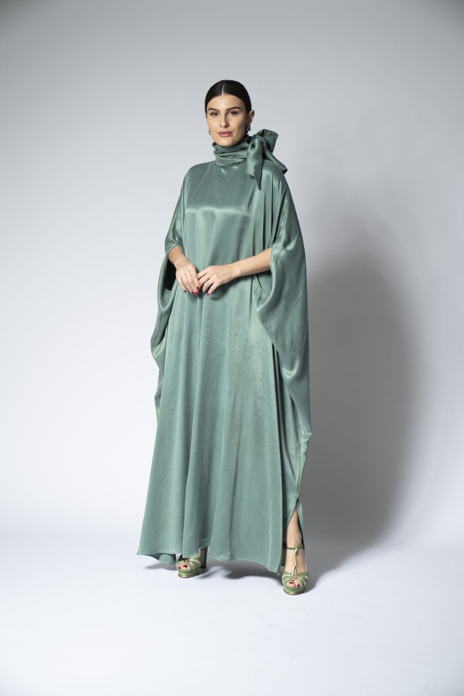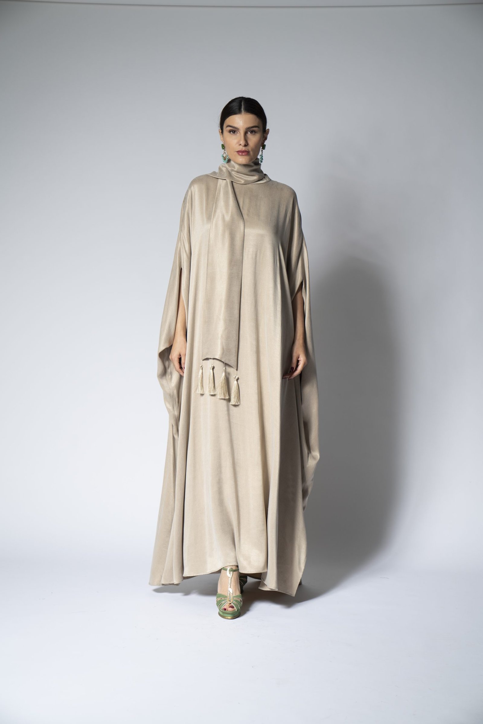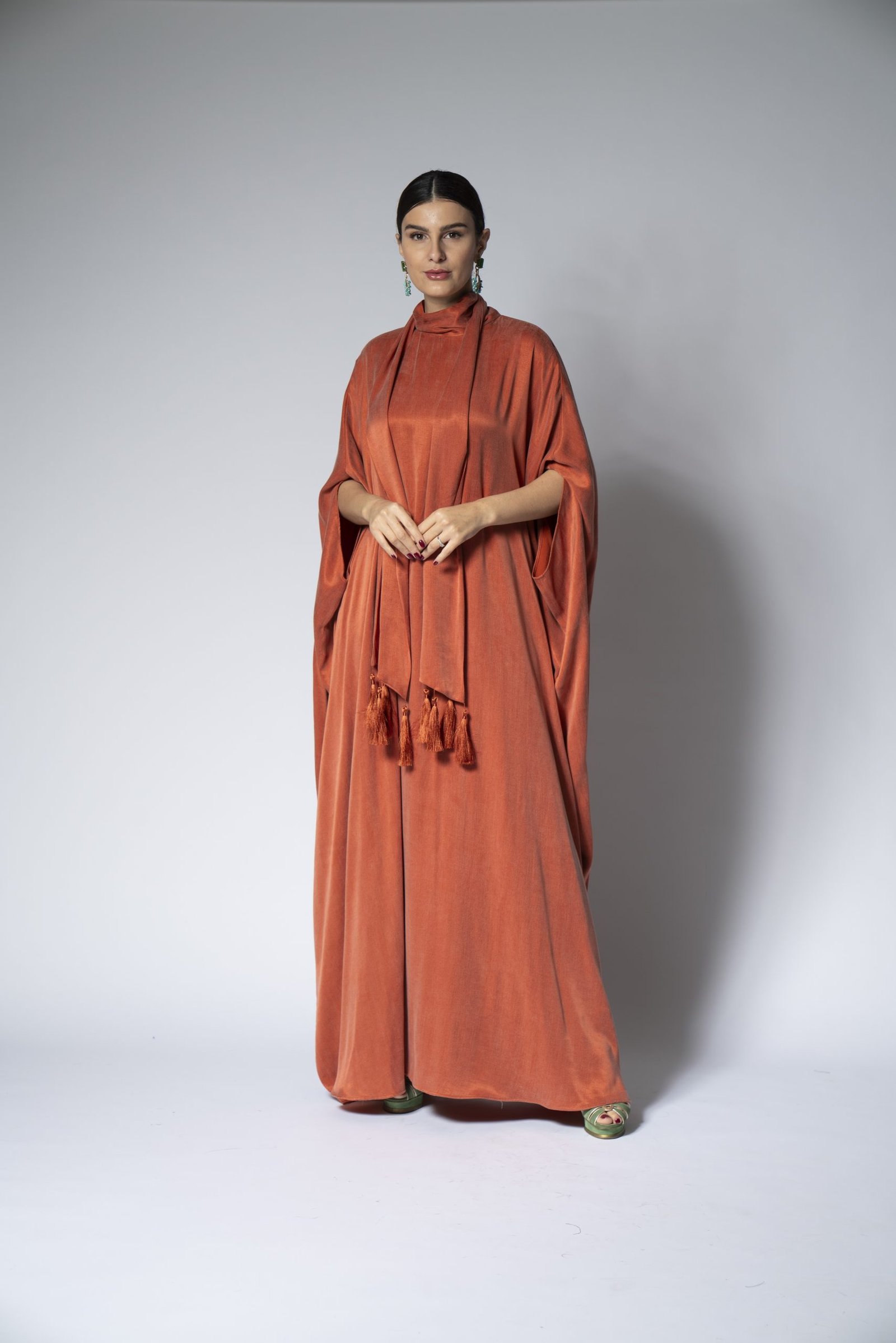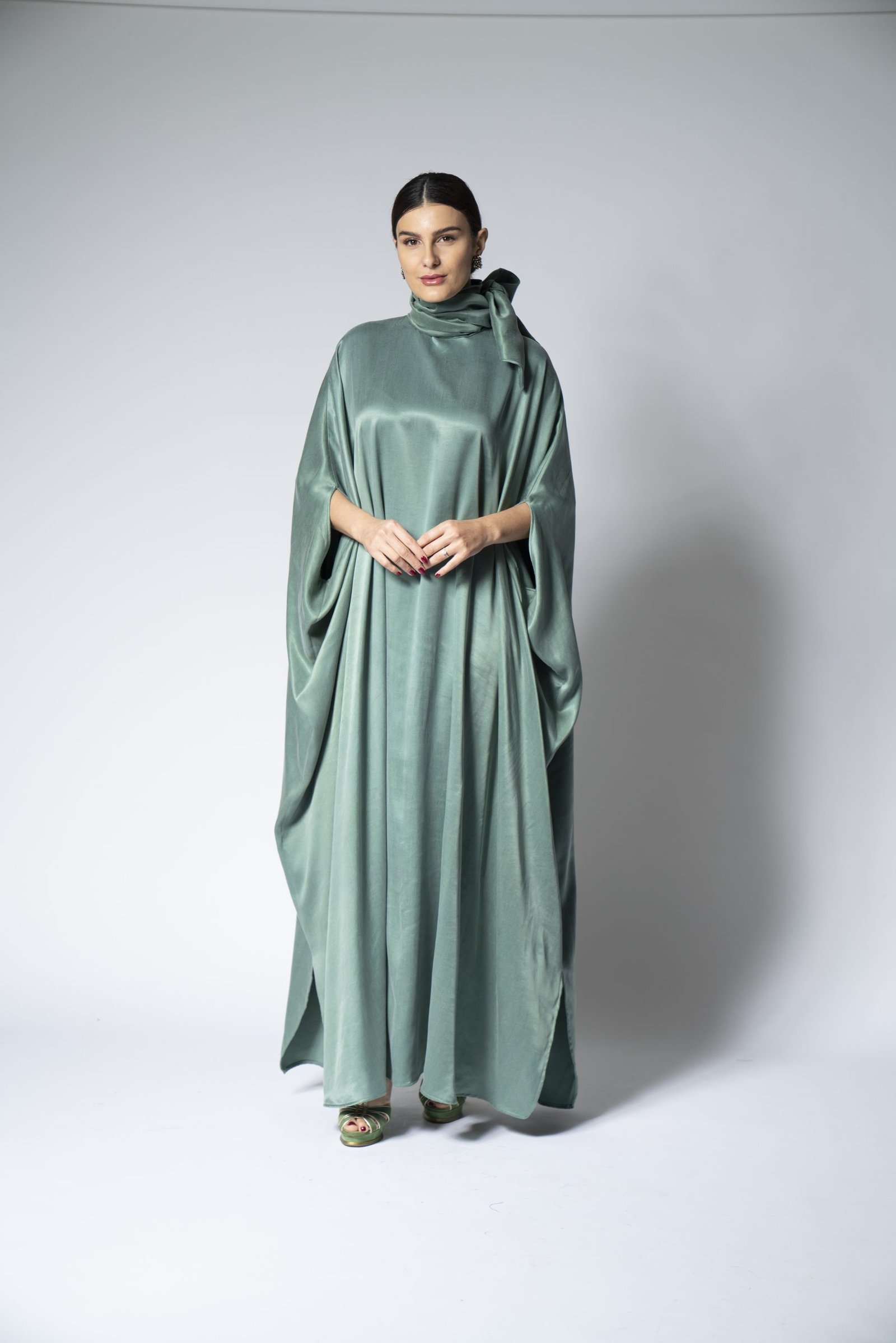 Embrace the purity and comfort of our organic teal Foolar jalabiya. This beautifully designed garment is made from environmentally friendly materials, ensuring that fashion and sustainability go hand in hand. Its rich teal hue is both soothing and striking, offering a versatile look that can transition from a casual daytime to an upscale evening affair. The relaxed fit and soft fabric drape elegantly, providing a flattering silhouette for all body types.