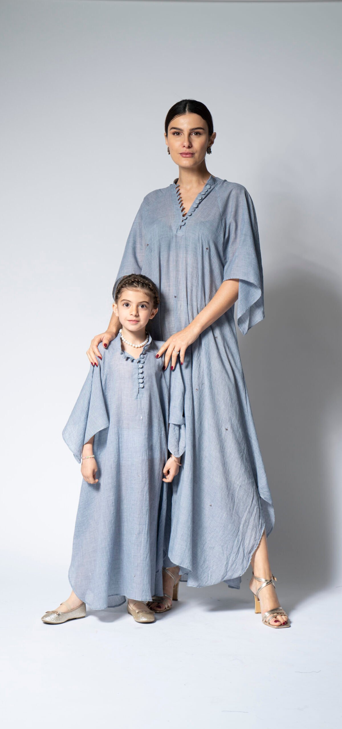 This Girls’ Jalabiya, made from soft and breathable cotton, features vibrant printed fabric and intricate embroidery on the back, creating a unique, classy, and fashionable design. Perfect for festive celebrations, family gatherings, or special occasions, it combines comfort with sophistication. The lightweight cotton ensures ease of movement, while the embroidered back detail adds an elegant touch to this standout piece. A beautiful addition to your little one’s wardrobe!