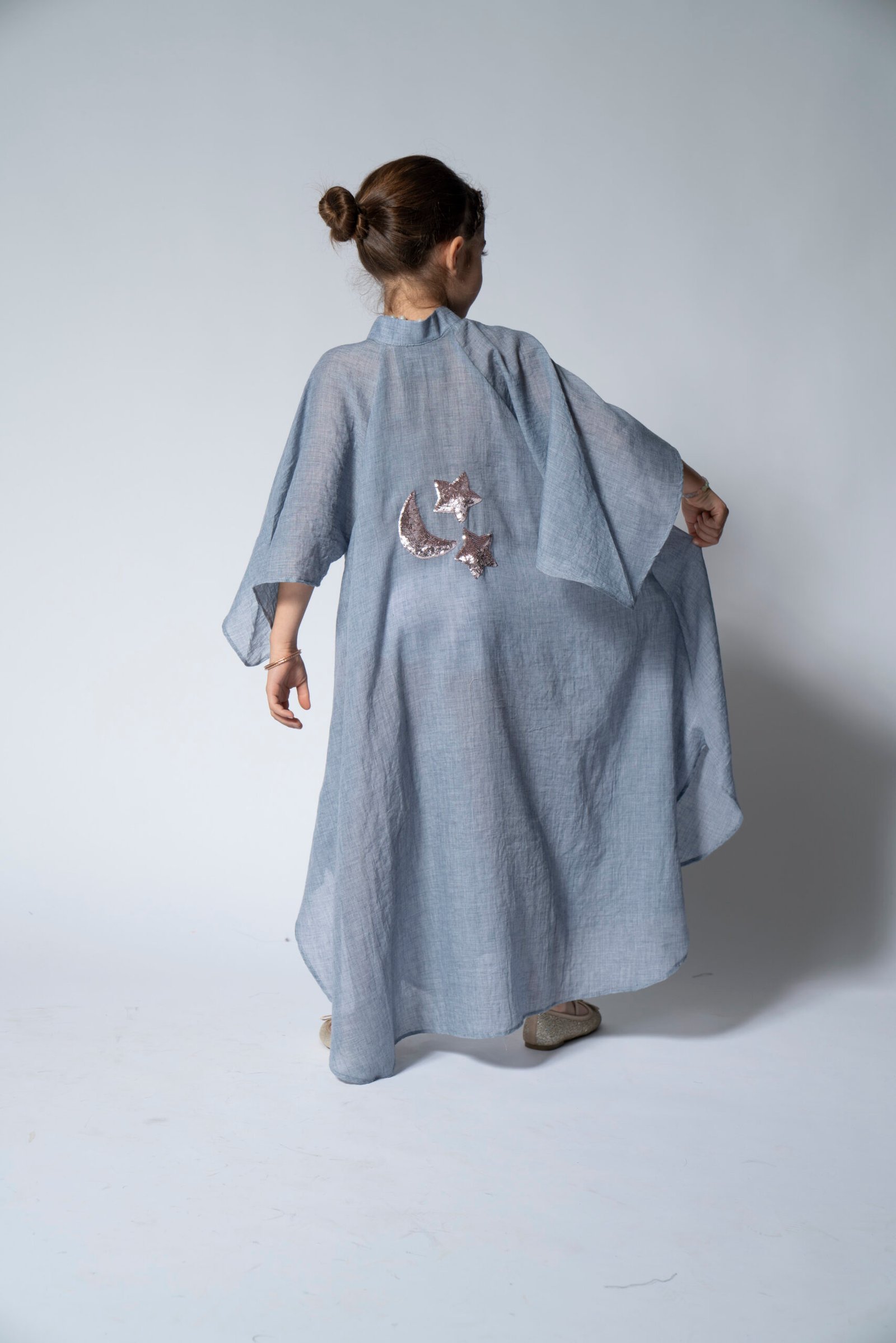 This Girls’ Jalabiya, made from soft and breathable cotton, features exquisite star embroidery on the back, adding a touch of whimsy and sophistication. Designed to be unique, classy, and fashionable, it’s perfect for festive occasions, family gatherings, or casual outings. The lightweight cotton fabric ensures comfort and ease of movement, while the intricate embroidery elevates the overall look. A stylish and timeless choice for your little one!