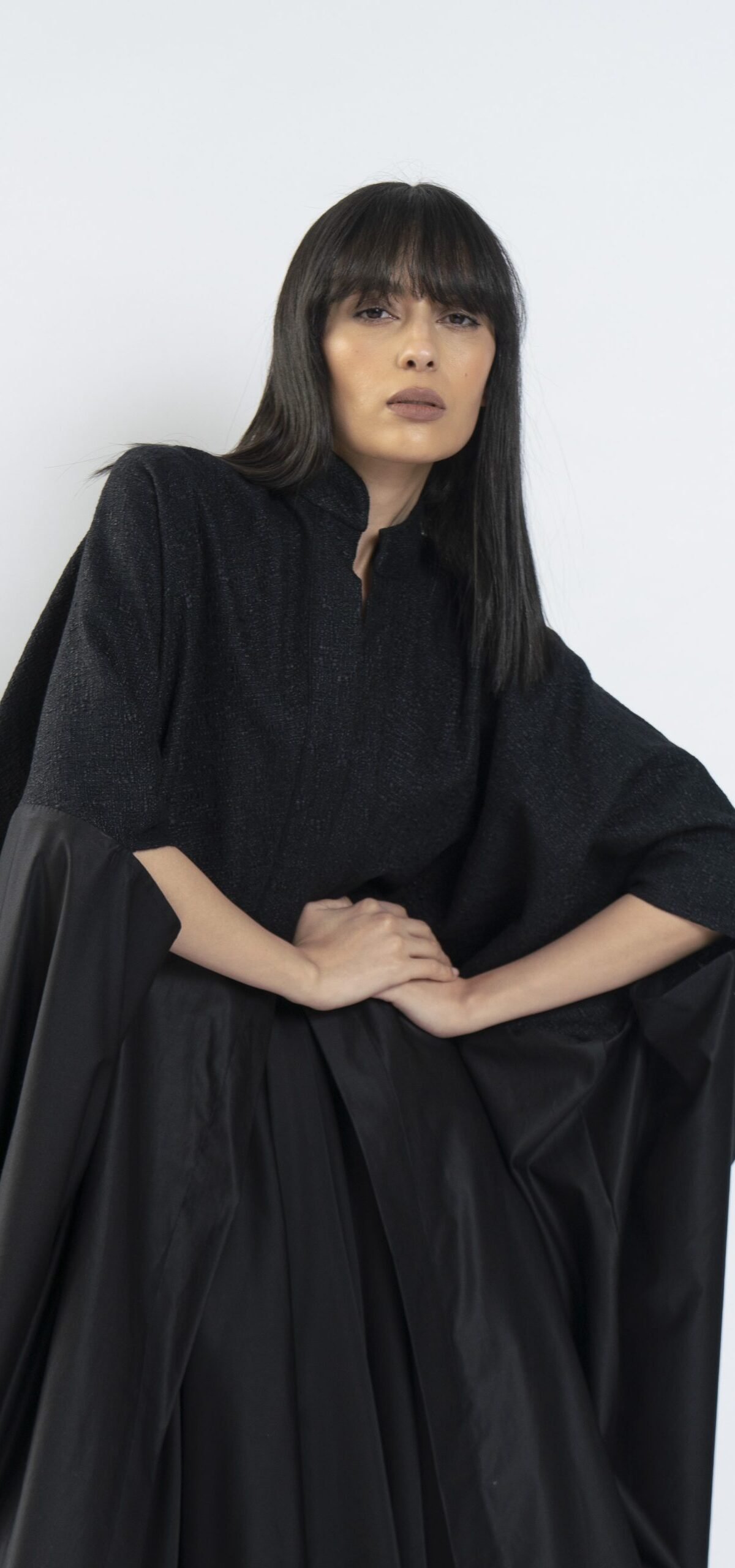 Embrace the chic simplicity of our grey cape-style wrap, an essential addition to the modern wardrobe. The minimalist design is punctuated by the soft contrast of grey tones, offering a sophisticated layer that complements any look. Whether draped over daytime casual wear or added to an evening outfit, this cape provides both elegance and warmth without compromising on style. It’s an adaptable piece for those who value form and function in their fashion choices.