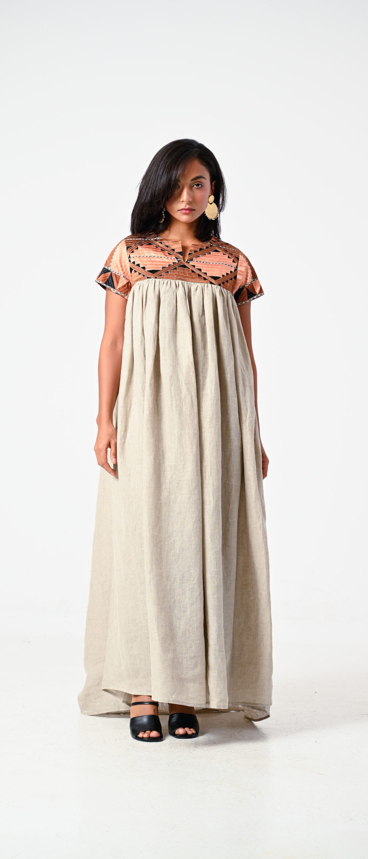 Linen kaftan with hand embroidery