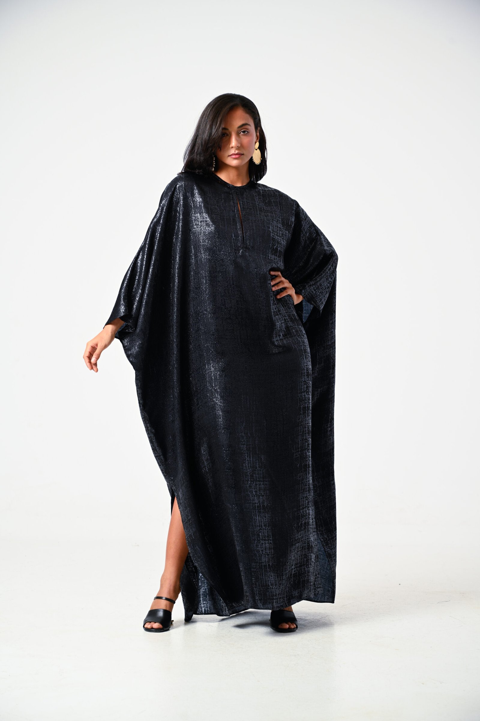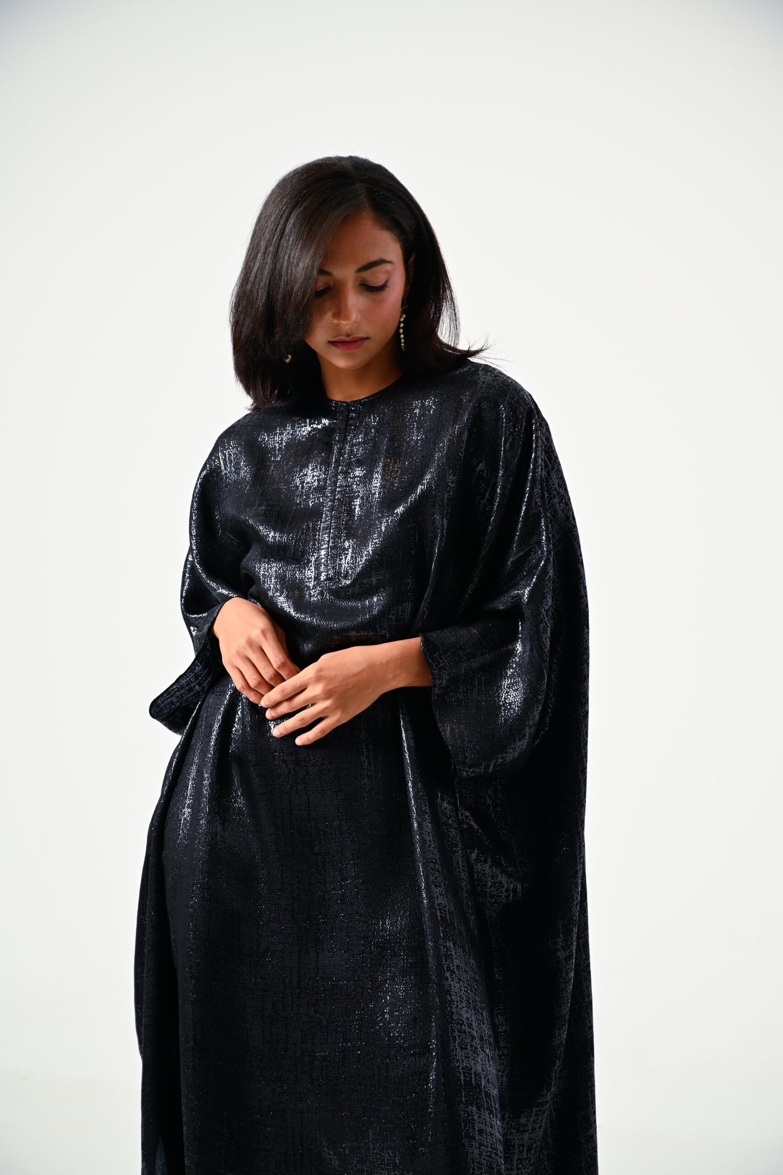 This black kaftan, crafted from premium shine silk, exudes effortless glamour and refinement. The silky fabric offers a lustrous finish, creating a graceful drape perfect for formal occasions, festive events, or special evenings. Designed to be unique, classy, and fashionable, this piece adds a touch of timeless elegance to any wardrobe. Radiate confidence and style in this stunning silk kaftan, tailored for those who appreciate true luxury.