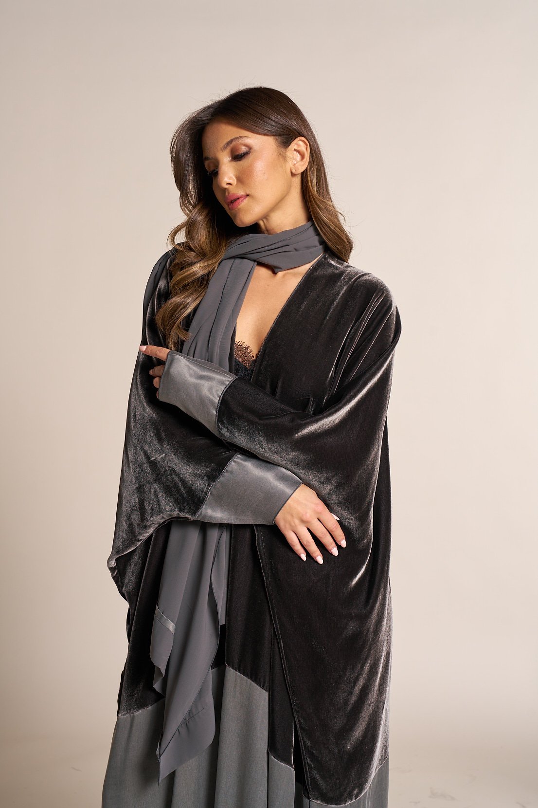 Velvet and organic abaya _ half bisht