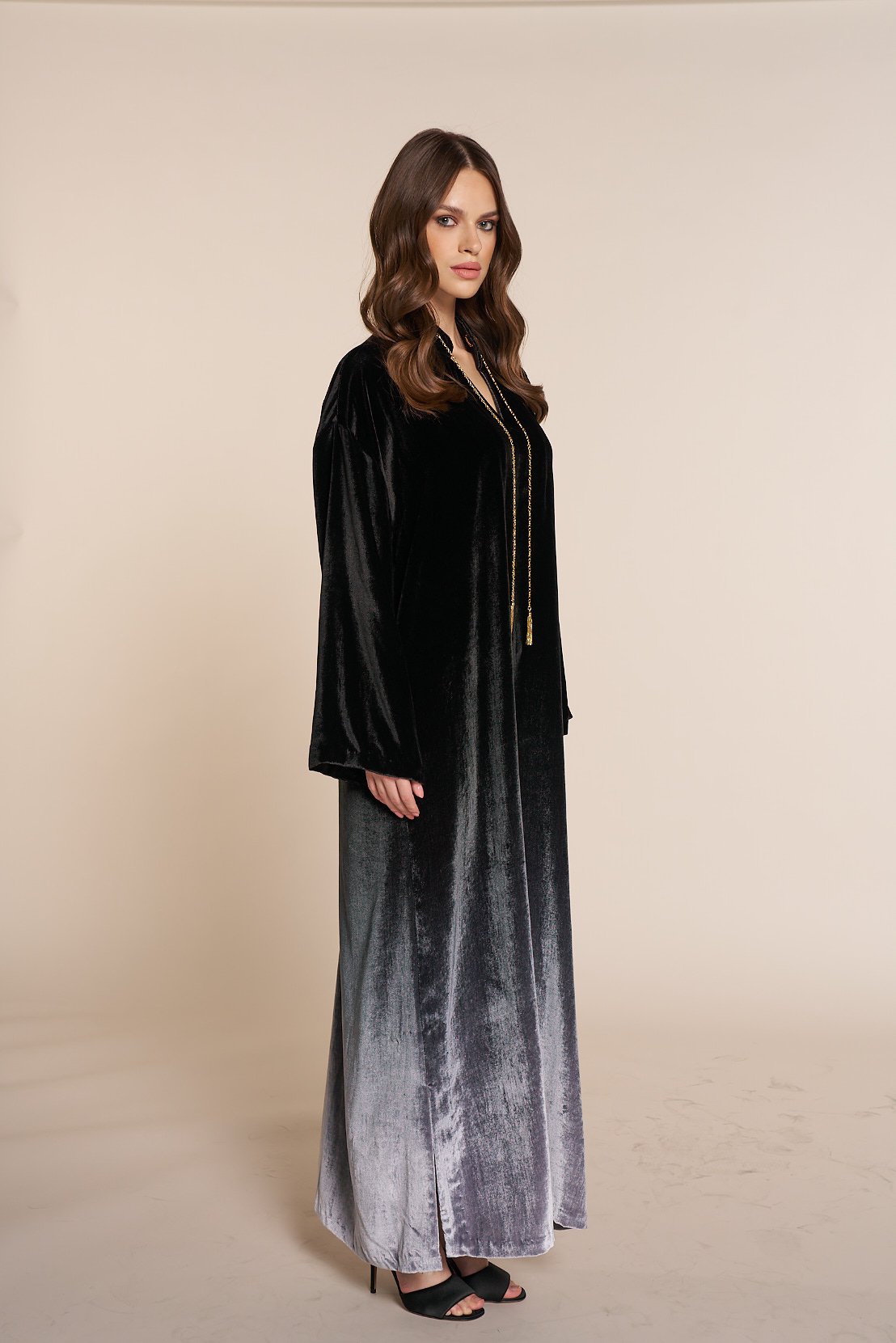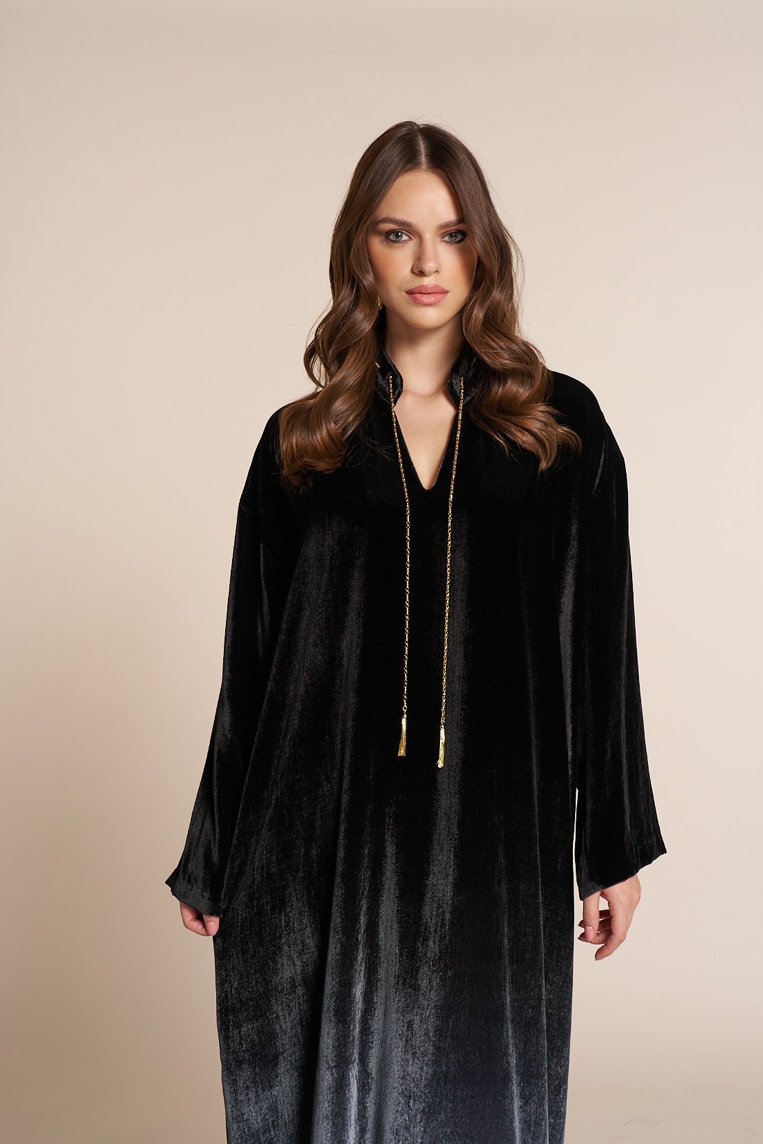 Velvet jalabia with a chain accessory