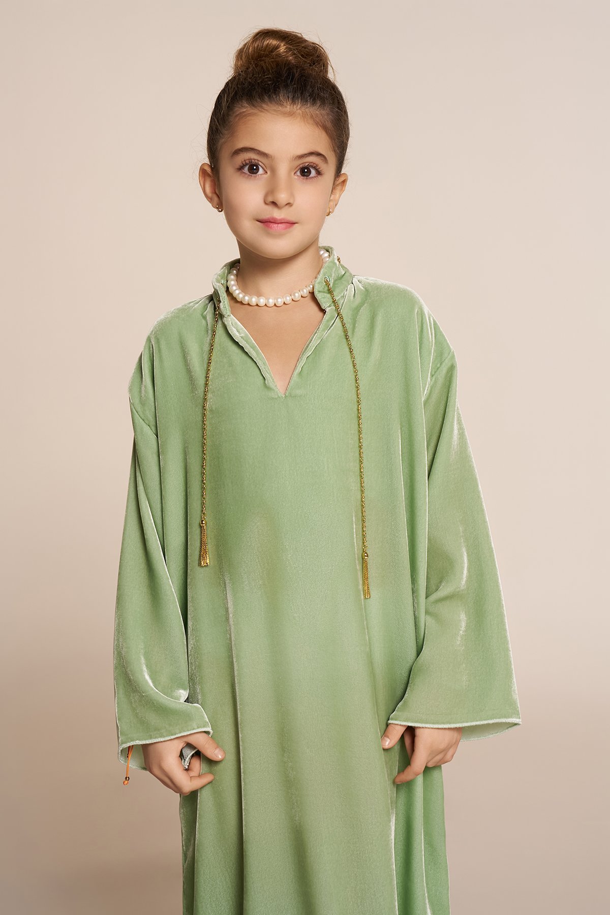 Velvet jalabia with a chain accessory