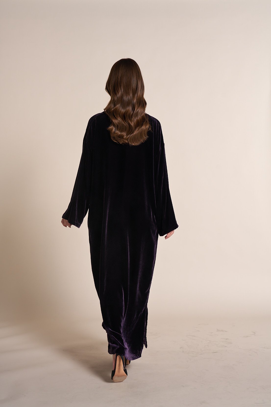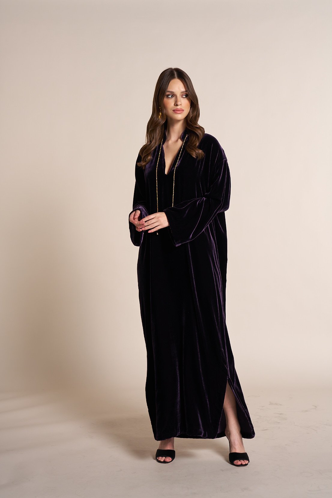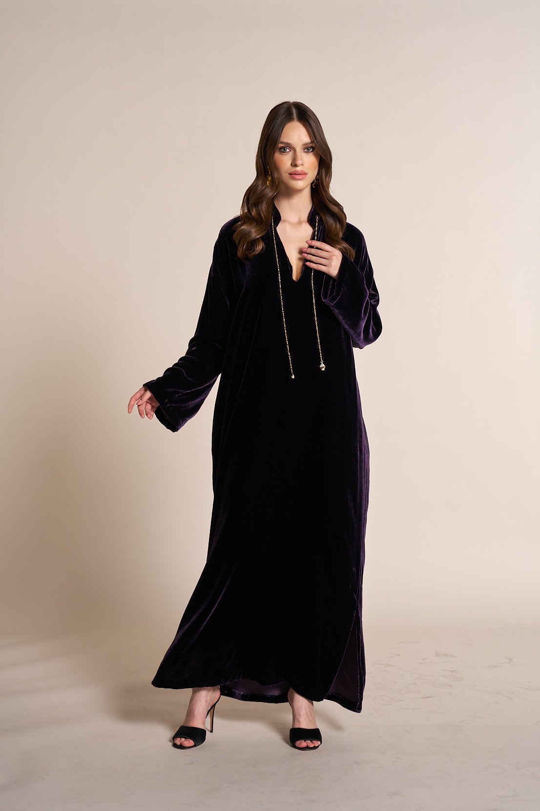 Velvet jalabia with a chain accessory