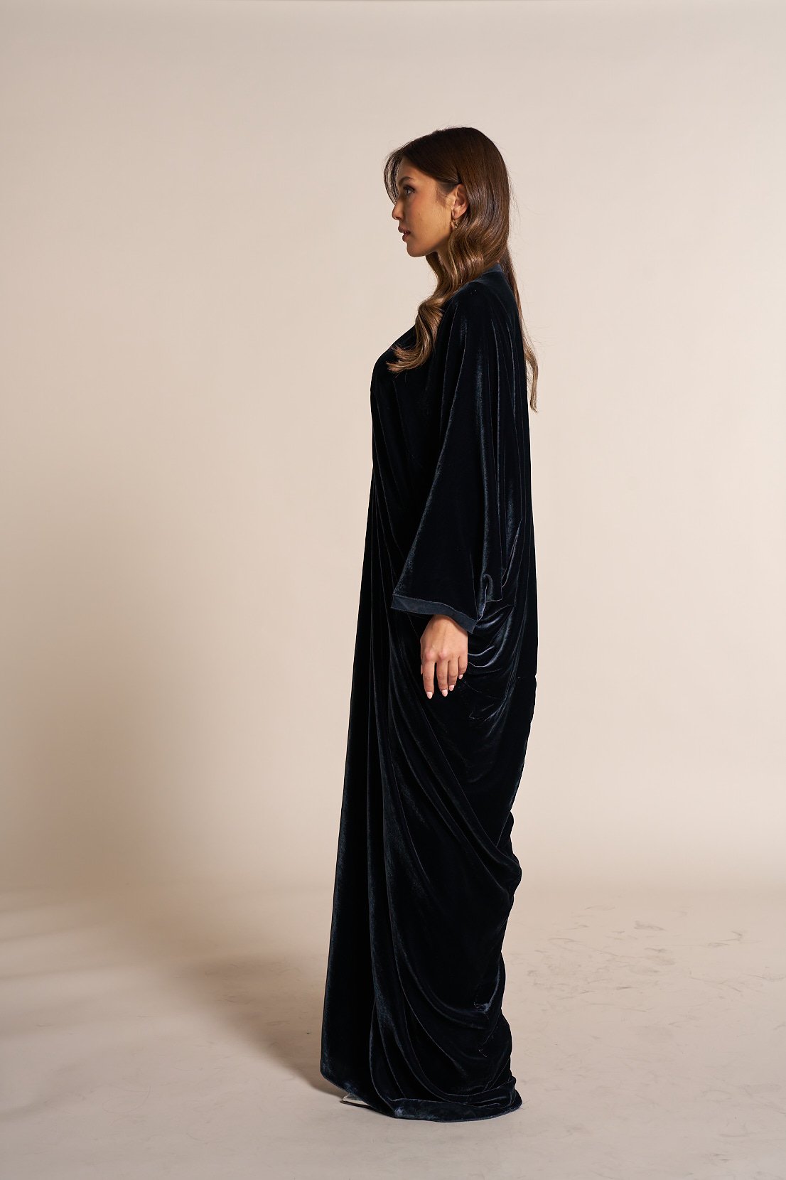 Velvet kaftan v neck with multiple cut details