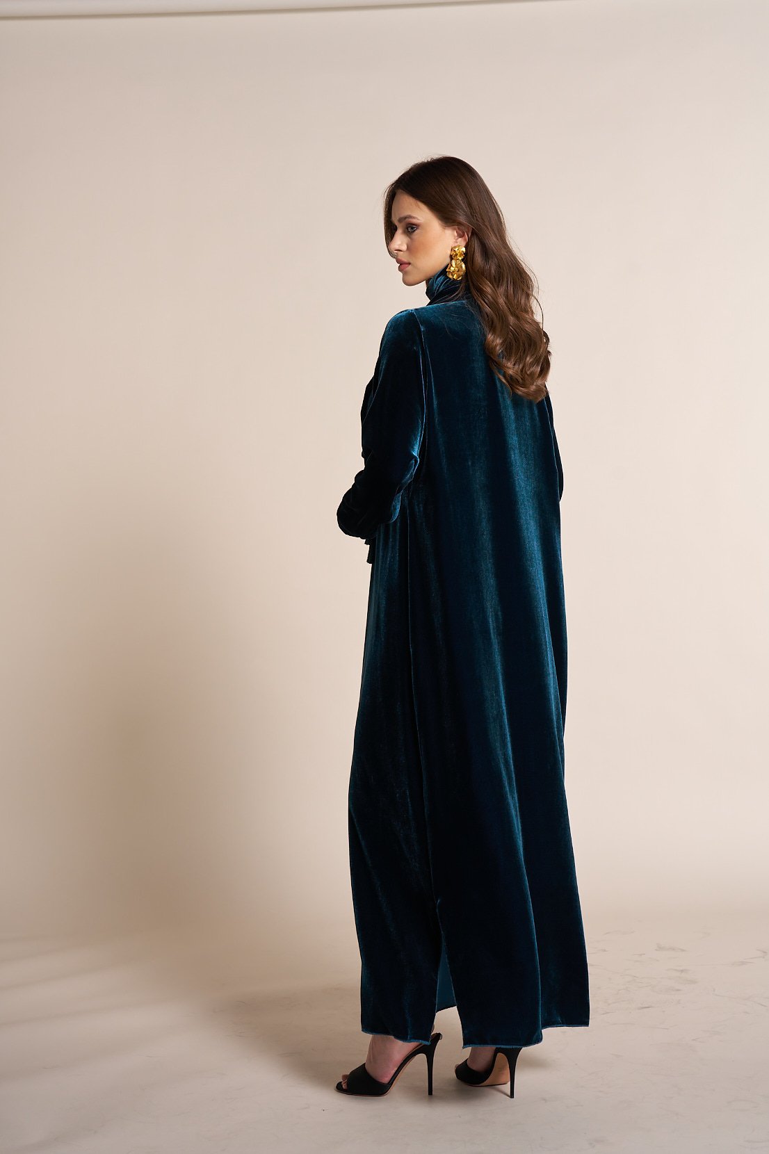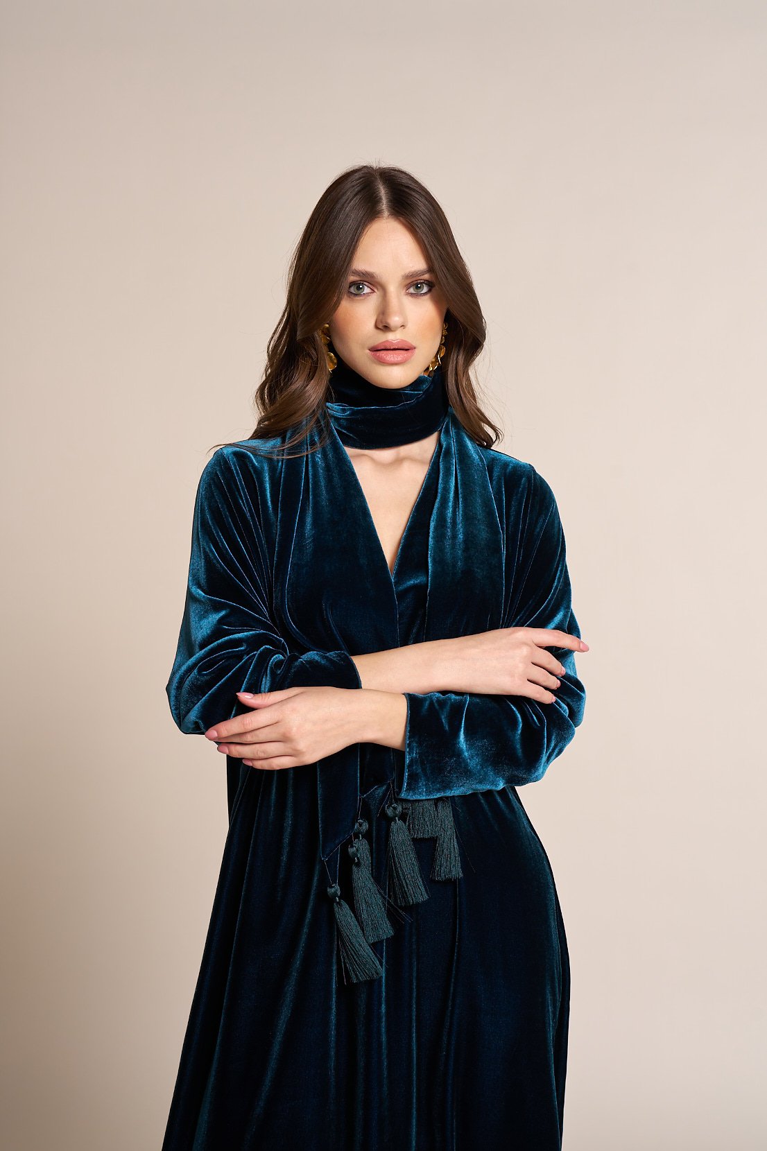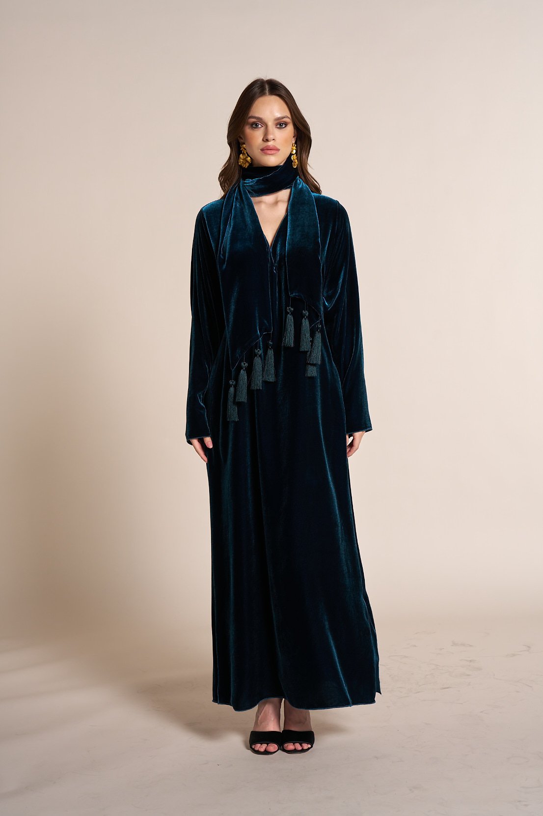 Velvet kaftan v neck with shawl