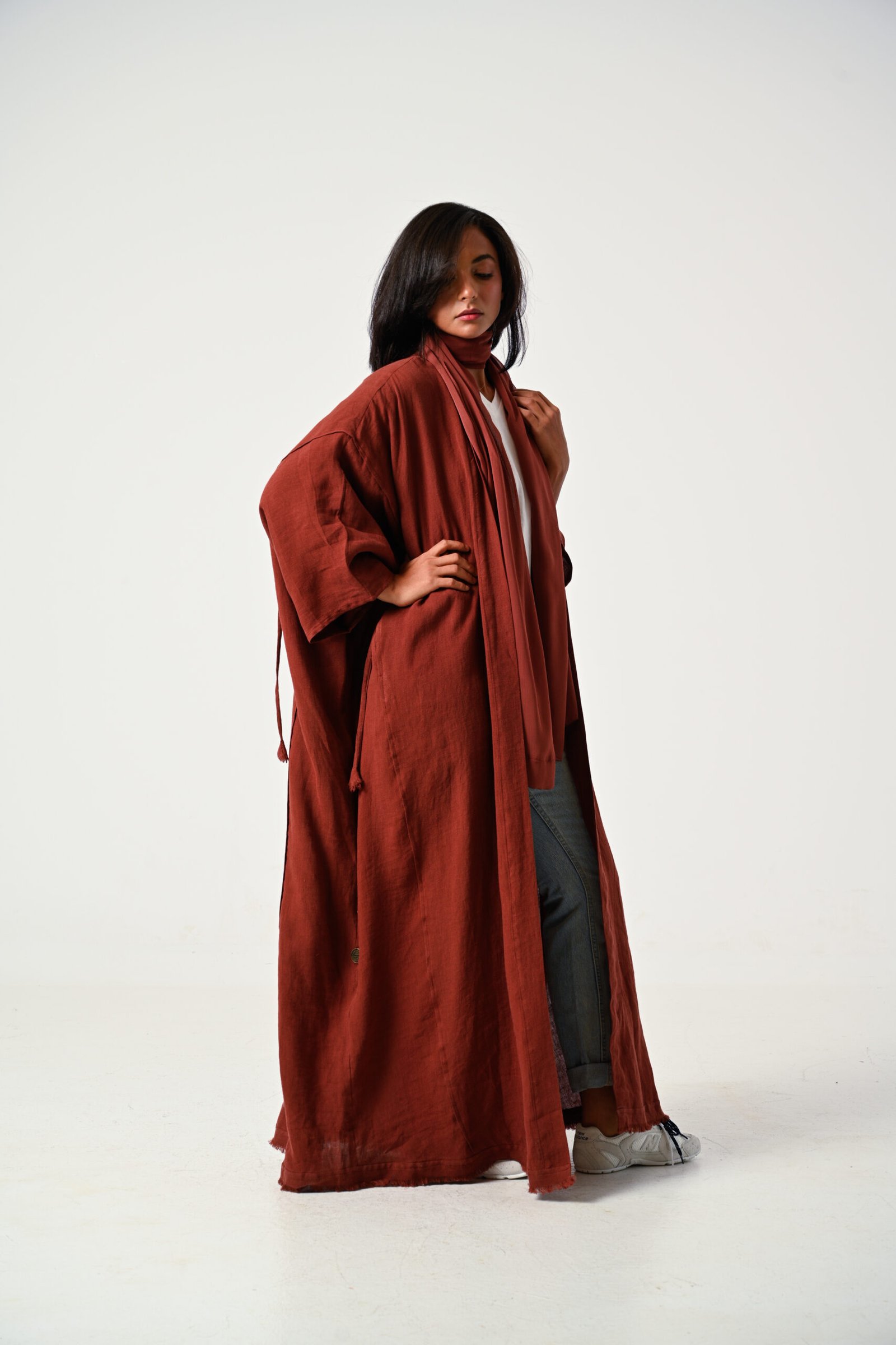 Brick linen abaya with shawl